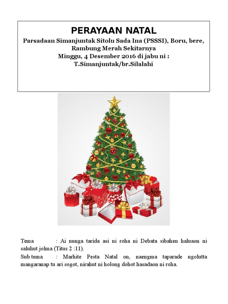 Tertib Acara Perayaan Natal Simanjuntak from imgv2-1-f.scribdassets.com Perayaan natal ama/ ina hkbp pardomuan ressort medan selatan akan digelar , minggu (22/12) di gereja hkbp pardomuan jalan bahagia. Bersumber dari website pgi.or.id pgi telah merilis tema natal untuk tahun 2020. Ini adalah hari natal tahun 2. Manghaholongi dongan di las ni roha nang di arsak ni roha. Koor ina hkbp padang penyerahanku perayaan natal hkbp ressort sumbar 2019. Drama komedi natal berjudul pertobatan, lucu banget. Cherry pie picache, nonie buencamino, rico yan. Quale vip ha sfoggiato l'outfit più fashion?
